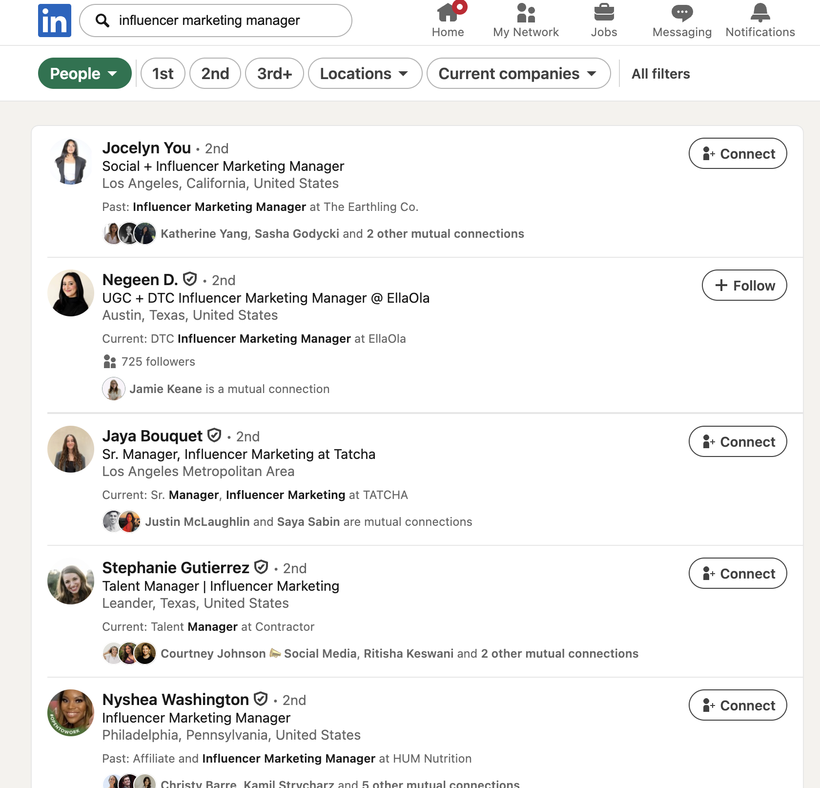3. Search for 10 agencies you’ve worked with before (or Google “influencer marketing agencies” and find them on LinkedIn.)